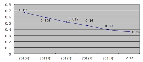 圖三:2010-2015年萬臺設備死亡率曲線圖