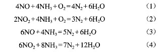 分解爐煙氣中的氮氧化物主要為NO,質量分數為95%,NO2質量分數僅為5%,氧質量分數大于3%。因此在水泥分解爐中主要進行反應(1)。
