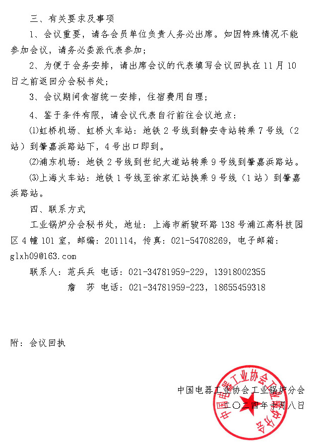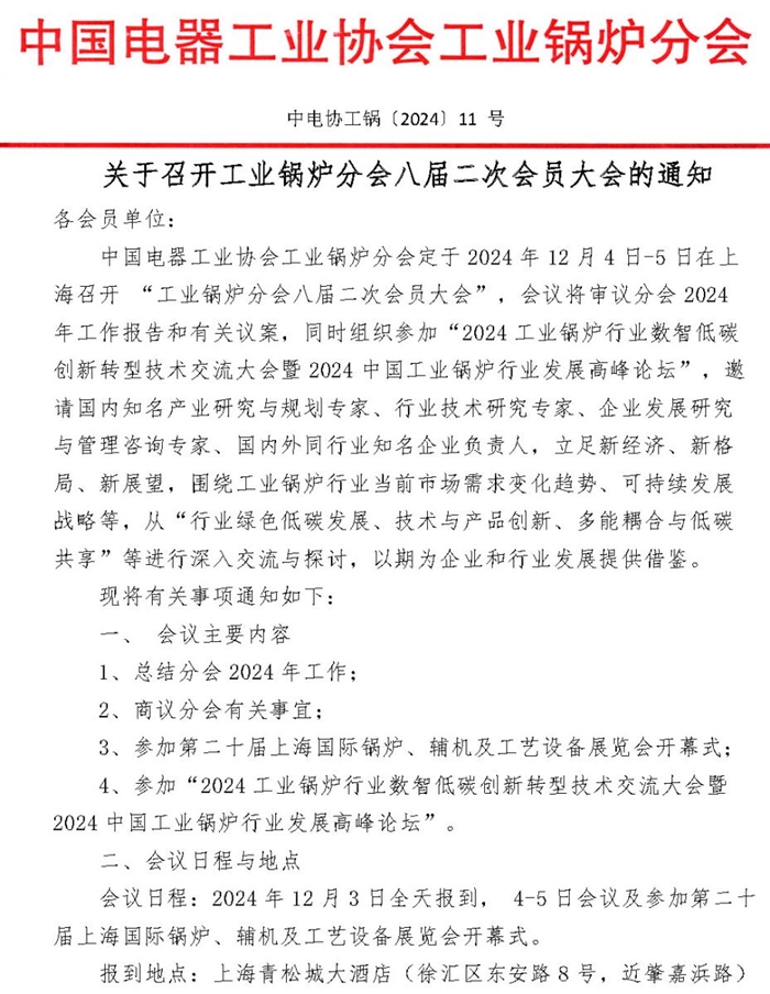 關于召開工業鍋爐分會八屆二次會員大會的通知